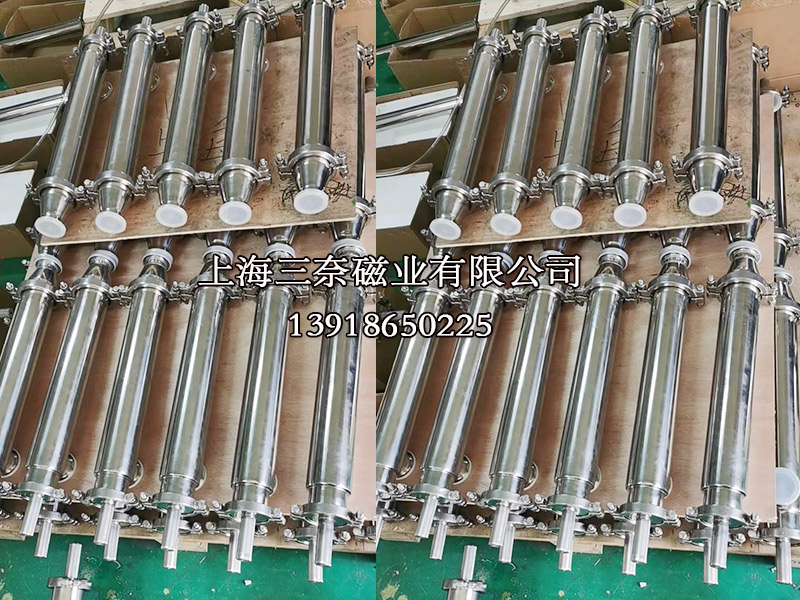 物料處理:物料從上而下入料,經(jīng)過磁棒磁格柵時(shí),磁性粉末及其氧化物被磁棒吸附在筒壁上,氣動(dòng)裝置運(yùn)行后輕便拉出磁棒進(jìn)行卸鐵。機(jī)器性能穩(wěn)定,節(jié)省人工,操作簡(jiǎn)便,外觀美觀。